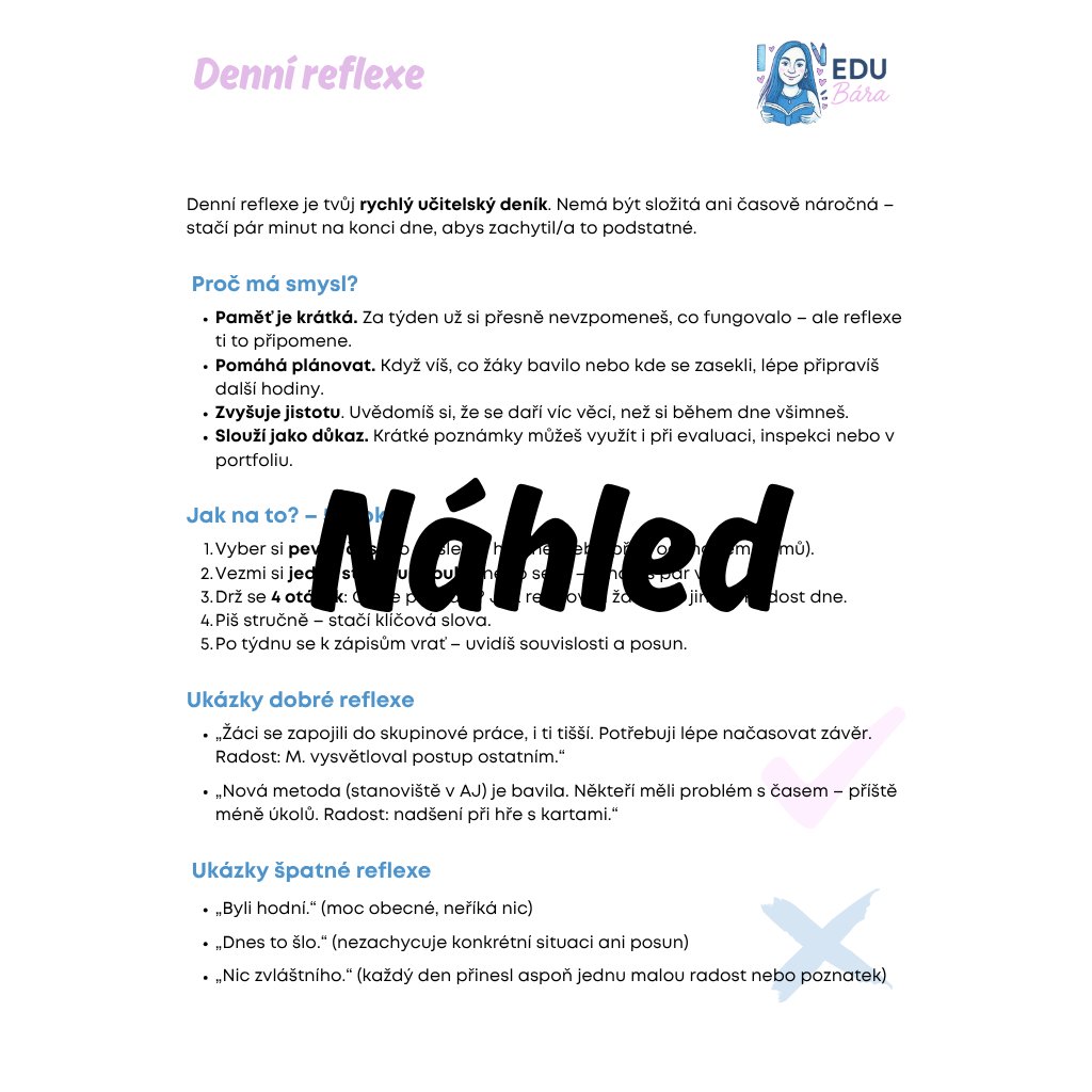 S naším e-bookem Autoevaluace učitele ZŠ – deník reflexí ti to zabere jen pár minut denně.