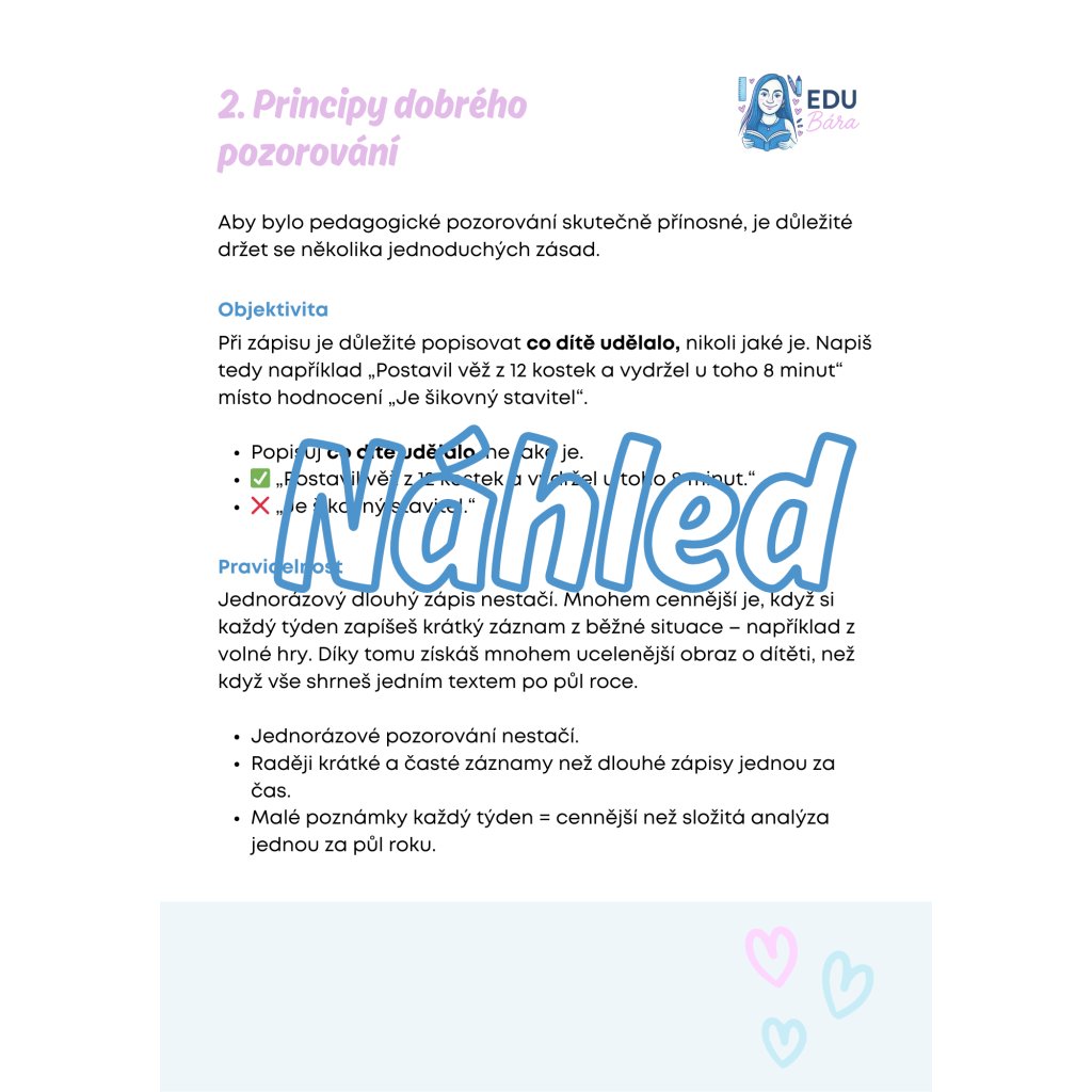 ✅ principy dobrého pozorování – konkrétnost, objektivita, pozitivní pohled