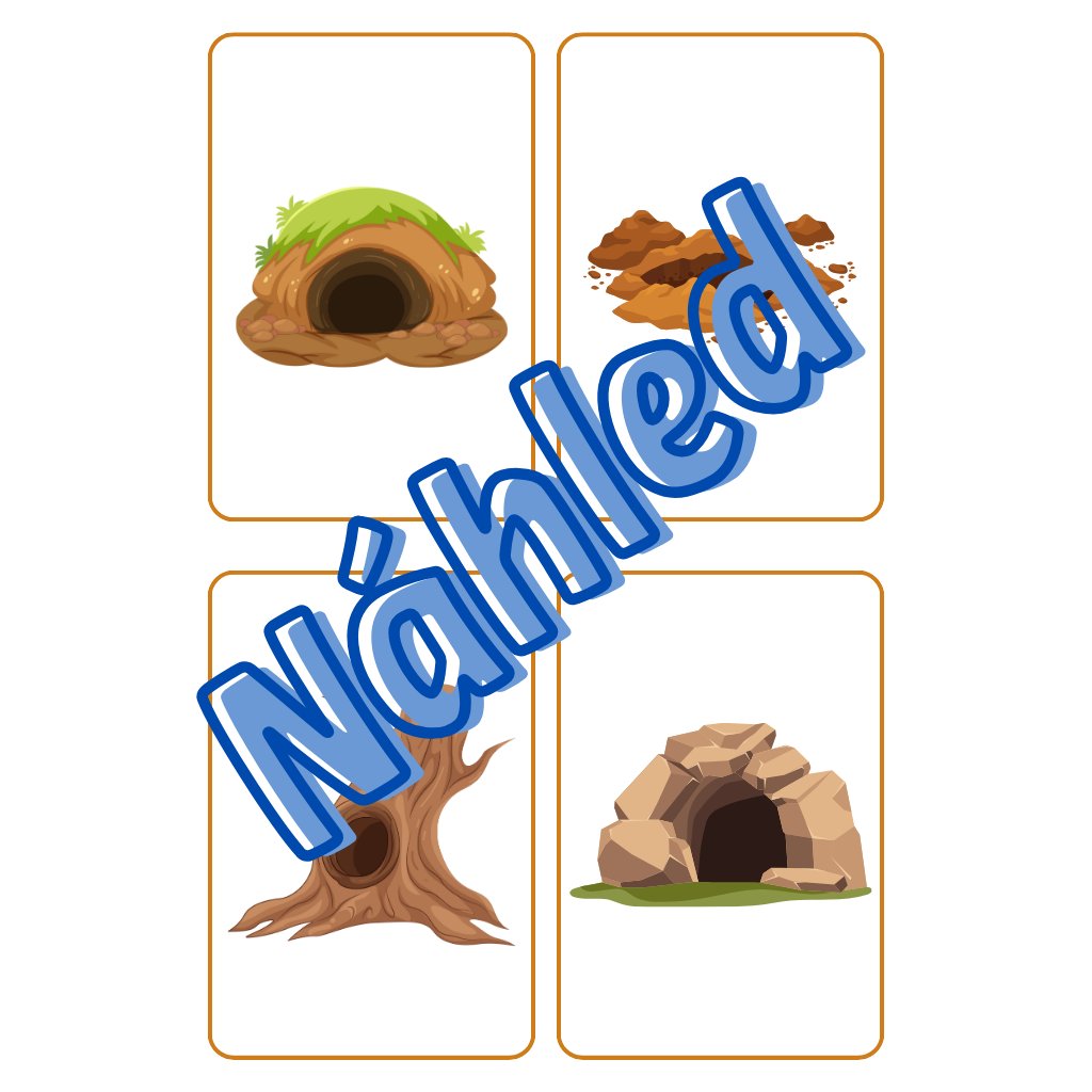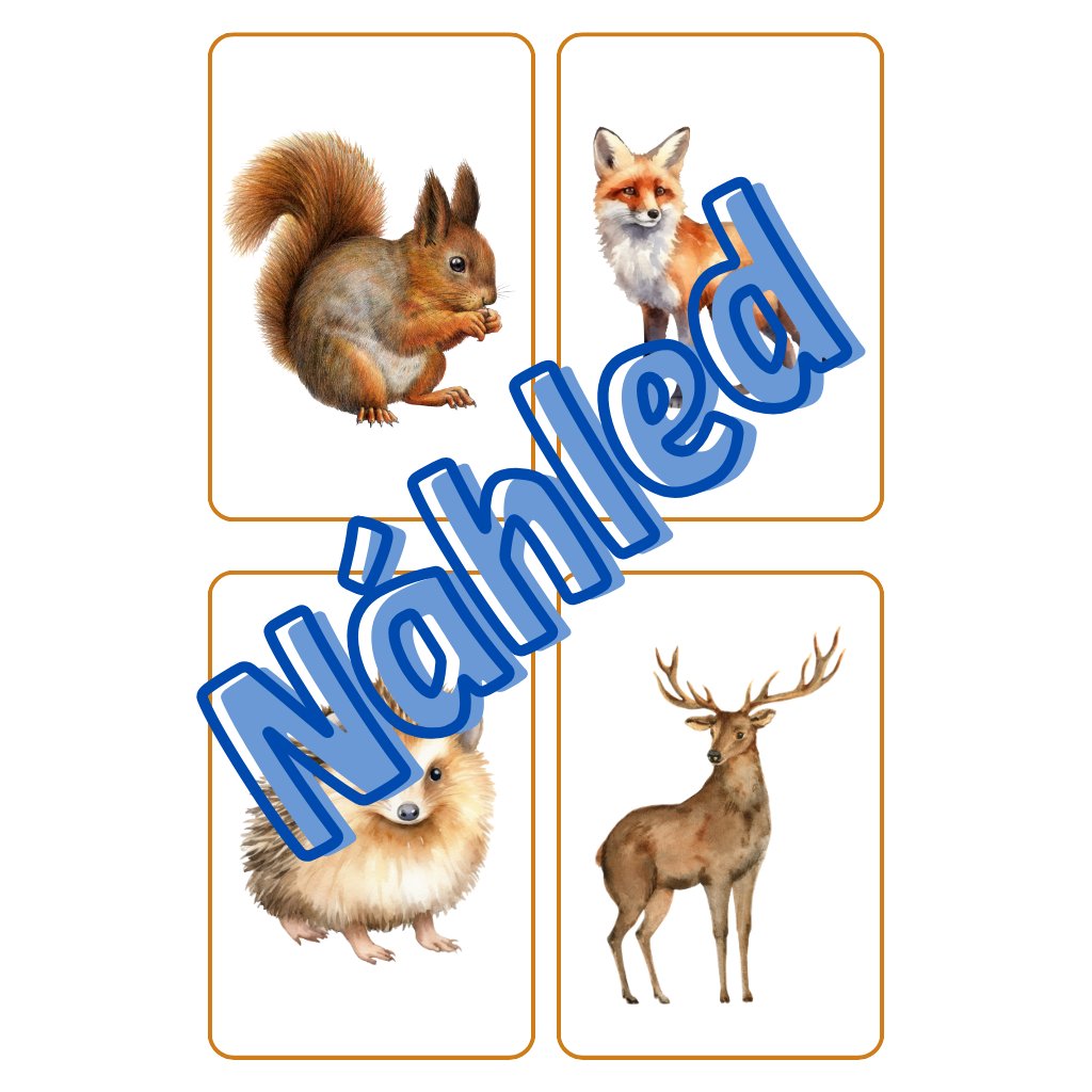 Kartičky lesní zvířátka - Zvířátka, stopy, pelíšky