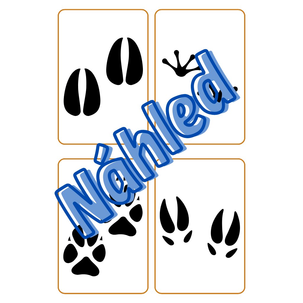 24 ilustrovaných kartiček s lesními zvířaty, jejich stopami a úkryty,