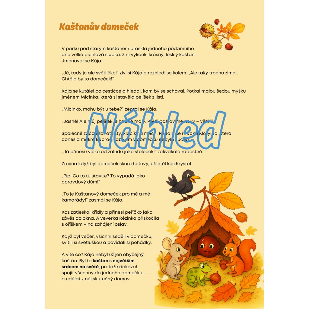 ✅ Pohádky (Jak rostl kaštan, Kaštanův domeček) s otázkami k porozumění