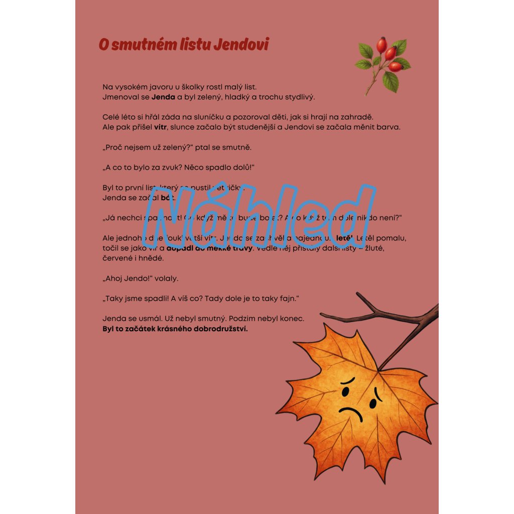 ✅ Pohádky a příběhy (O smutném listu Jendovi, Kaštánek a vítr, Jak vítr nesl draka Domču, Jablíčko, které chtělo do koláče)