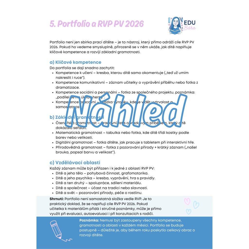 Praktický e-book, který ti krok za krokem ukáže, jak vést portfolio dítěte v MŠ smysluplně, jednoduše a v souladu s RVP PV 2026.