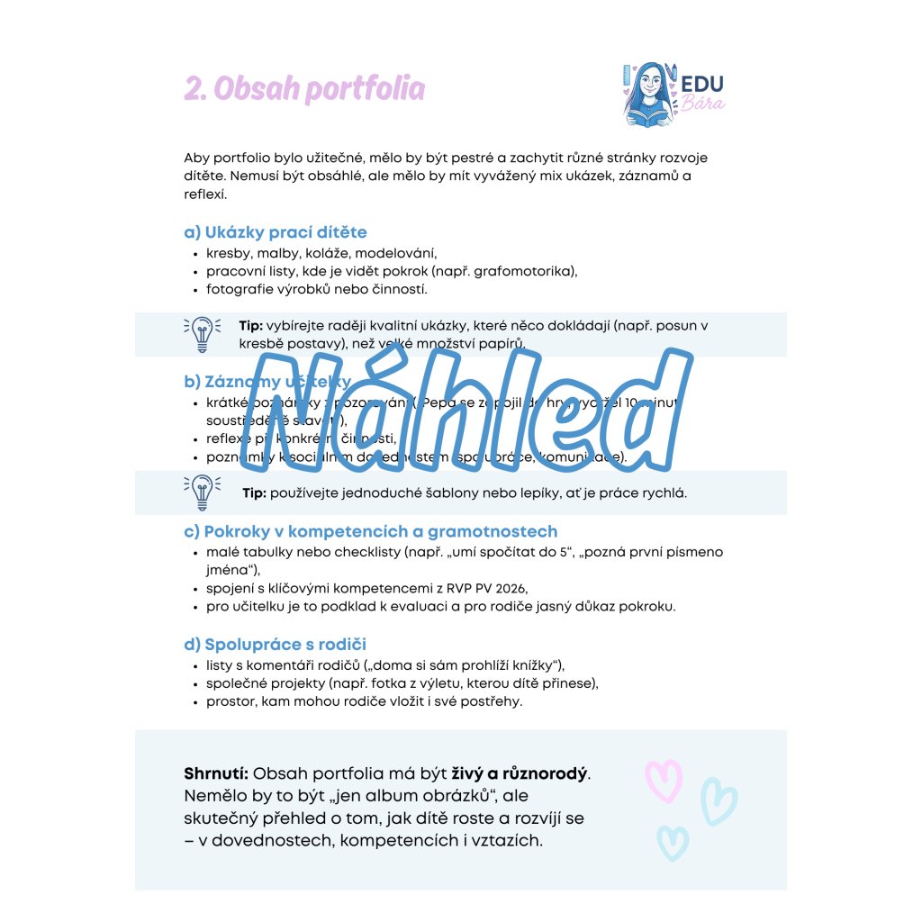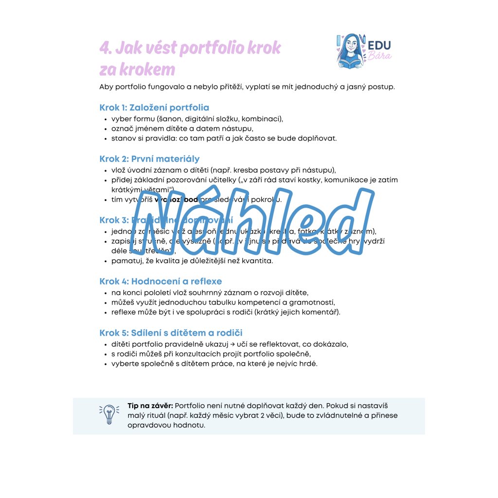 💡 V e-booku najdeš návody, šablony a tipy, jak vést portfolio tak, aby bylo užitečné pro děti, rodiče i učitelku – bez zbytečné administrativy a zahlcení.