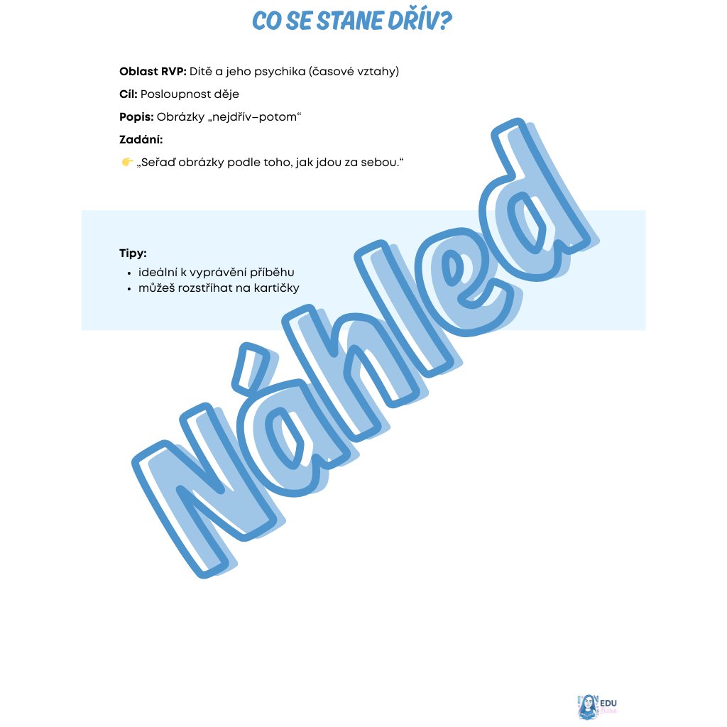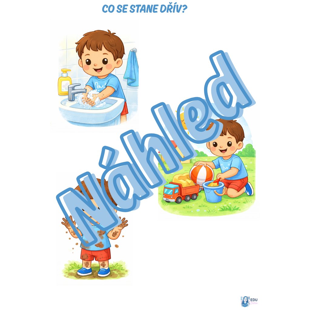 (co patří do školky, posloupnost děje – nejdřív/potom)